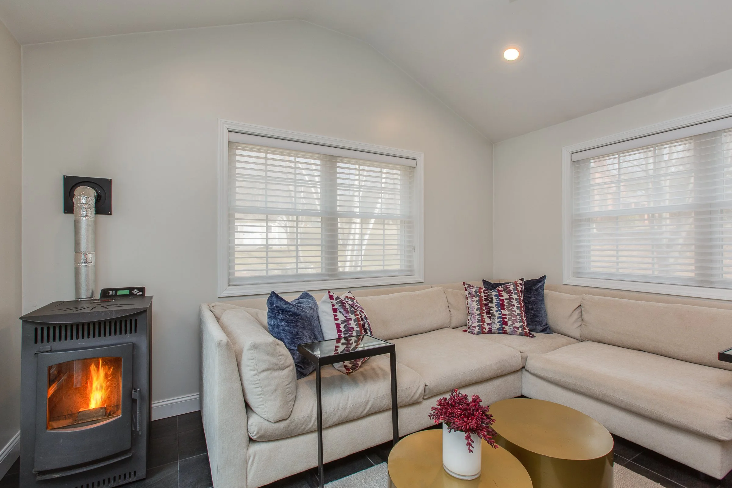 We chose a pellet stove to create the feel of a fireplace while also heating: